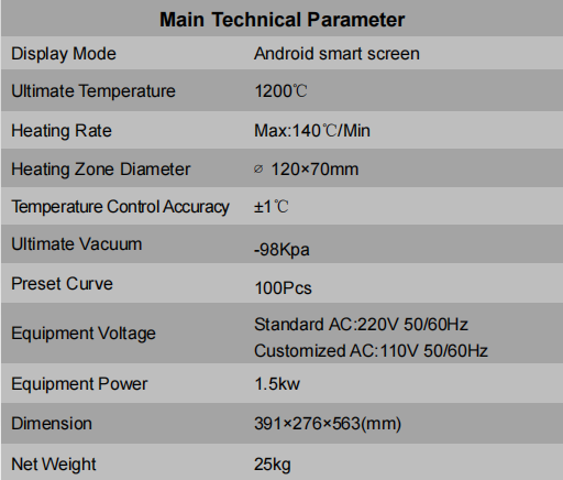 ·If furnace stand by 30mins without operation, the temperature would automatically cooling to protect furnace wires and reduce the device power consumption.